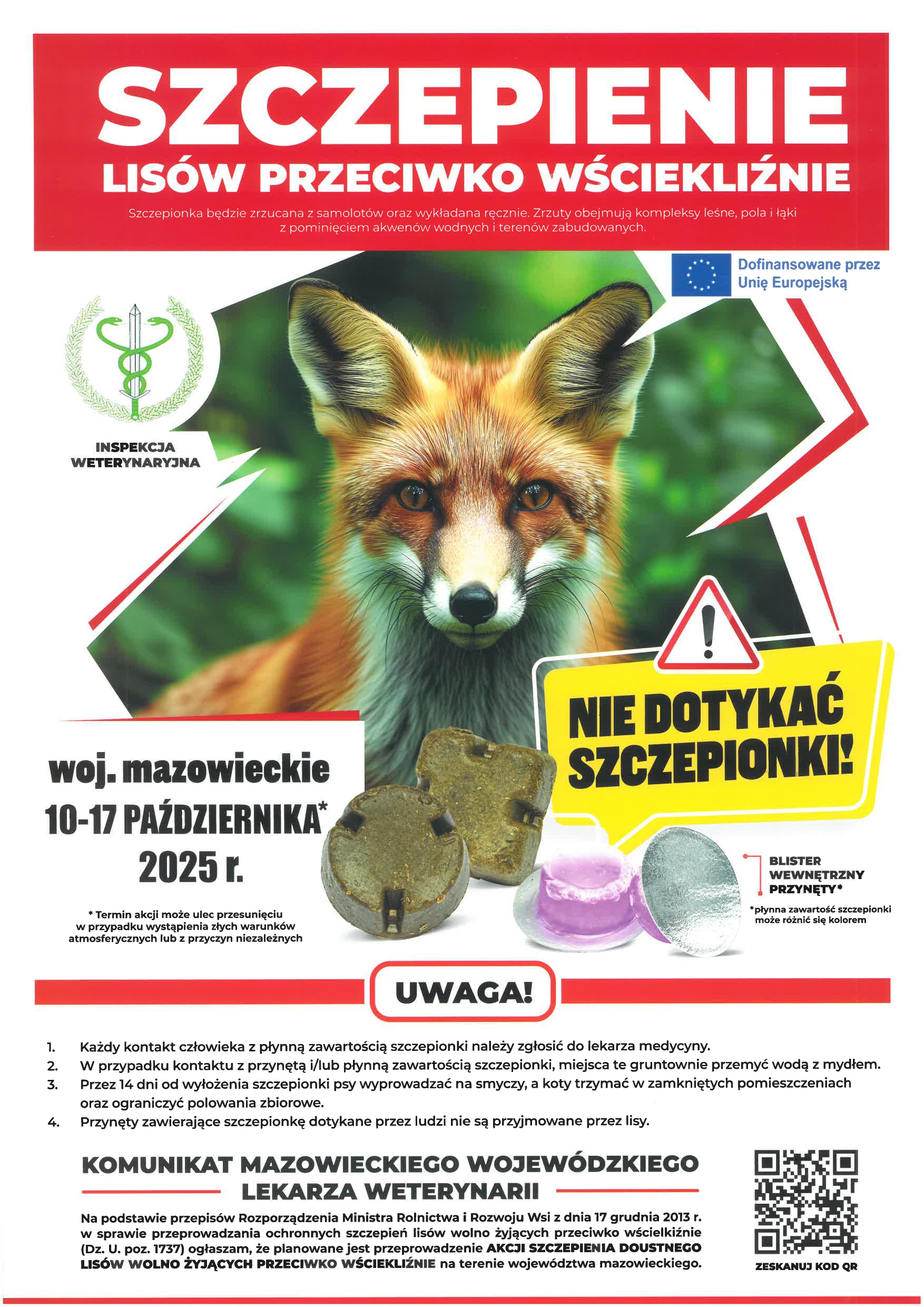 Szczepienie lisów przeciwko wściekliźnie, nie dotykaj szczepionki!